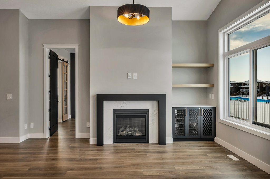 Upgrade to custom paint grade mantel w/ 8″ quartz surround