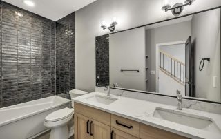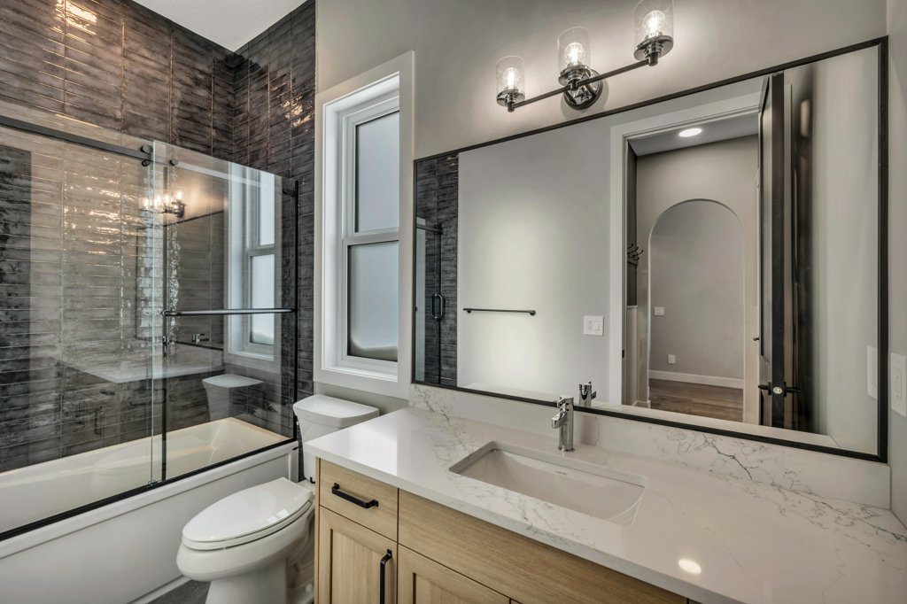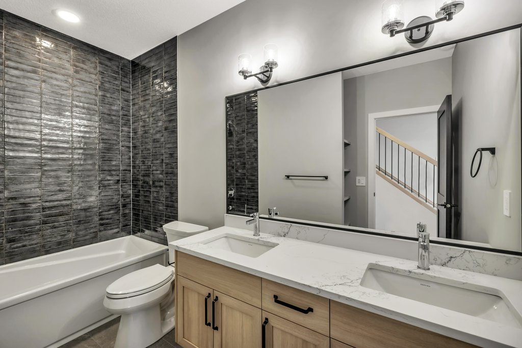 Upgrade basement bath to skirted tub w/ 3 tiled walls full height to ceiling + upgrade selection
