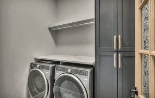 Add 24″ deep and 8′ high linen cabinet w/ 2 doors to the RH of the washer and dyer