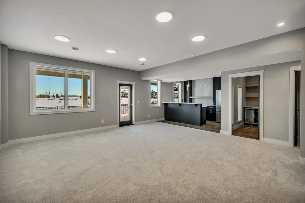 Add basement wine room and Wetbar as per plan- includes interior windows w/ plasma inserts and French door