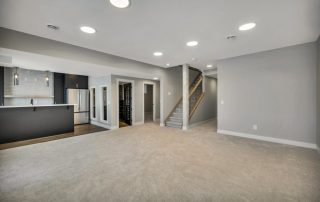 Upgrade basement stairs to have railing (8 RISE) w/ drywalled post on the side common to the basement bath
